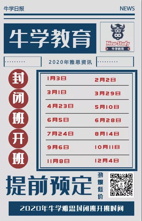 2020年封闭班全年开班时间已出,跟着牛学,提早规划,尽早准备,2020年一起冲刺高分