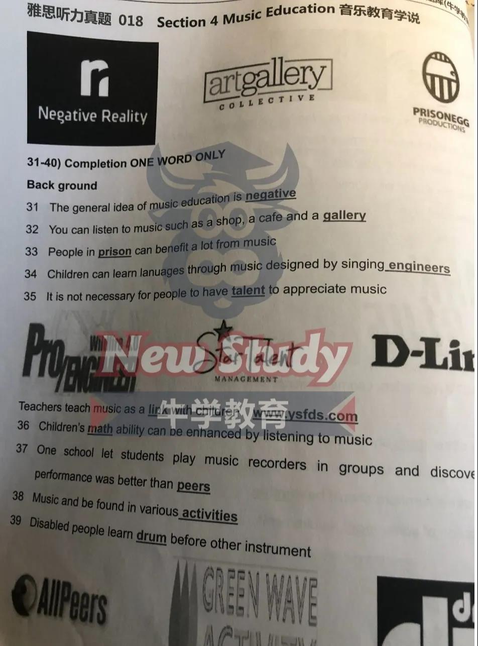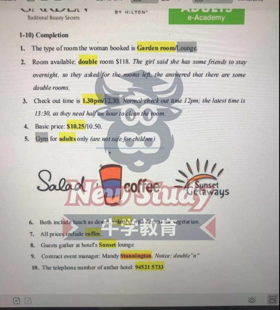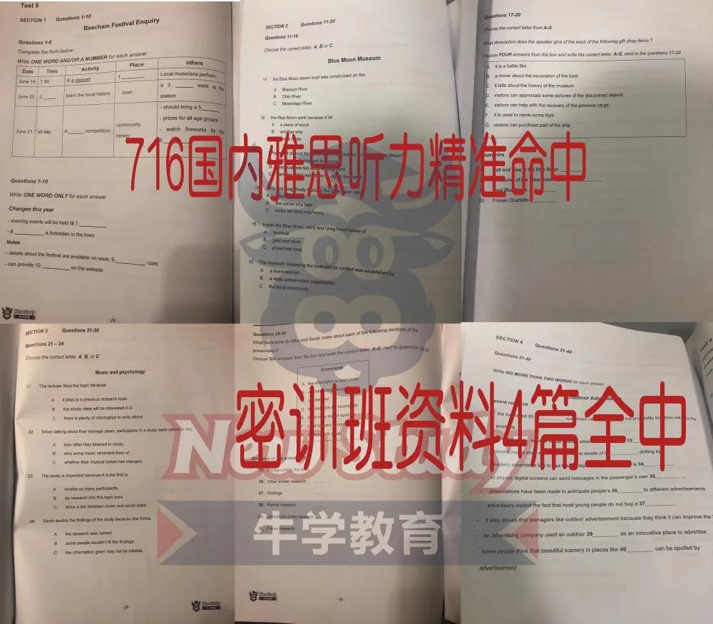 716雅思考试中,牛学密训班资料4篇听力全部命中