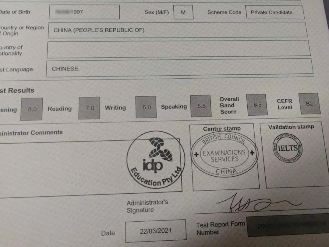 最后出分:听力8.0 阅读7.0 写作6.0 口语5.5 首考总分6.5