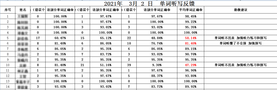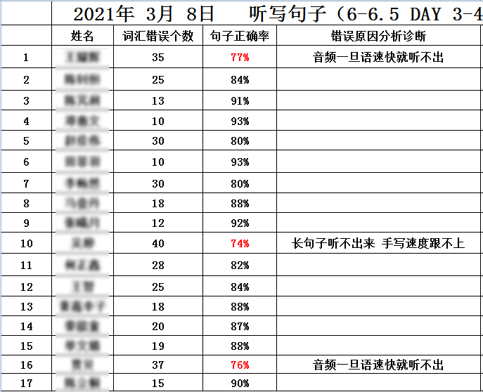从入学开始,每日早饭后进行词汇听写,每日晚饭后进行句子听写,根据听写结果进行学习反馈,及时查漏补缺!