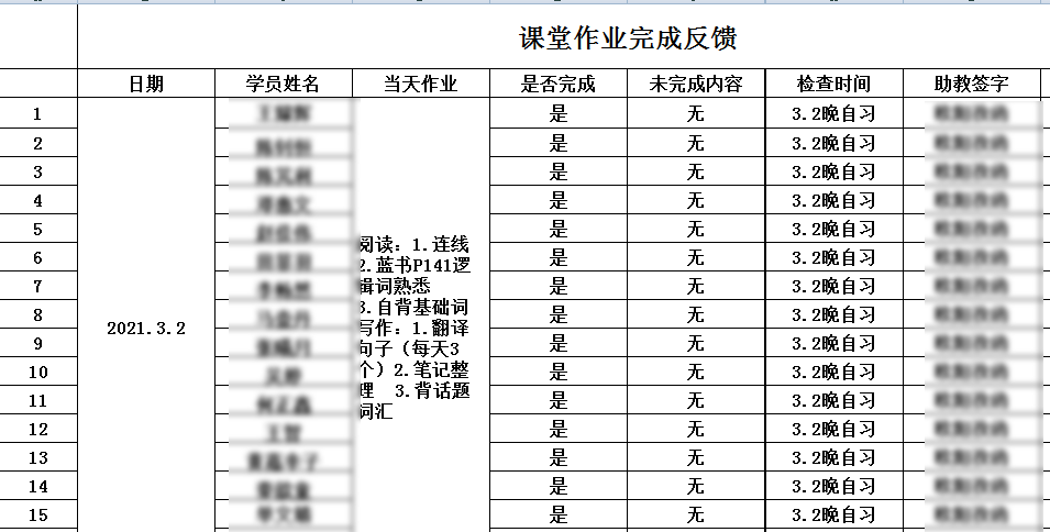 督促学员完成每日作业,及时检查作业完成情况,确保课堂知识巩固消化,学习效率快速高效