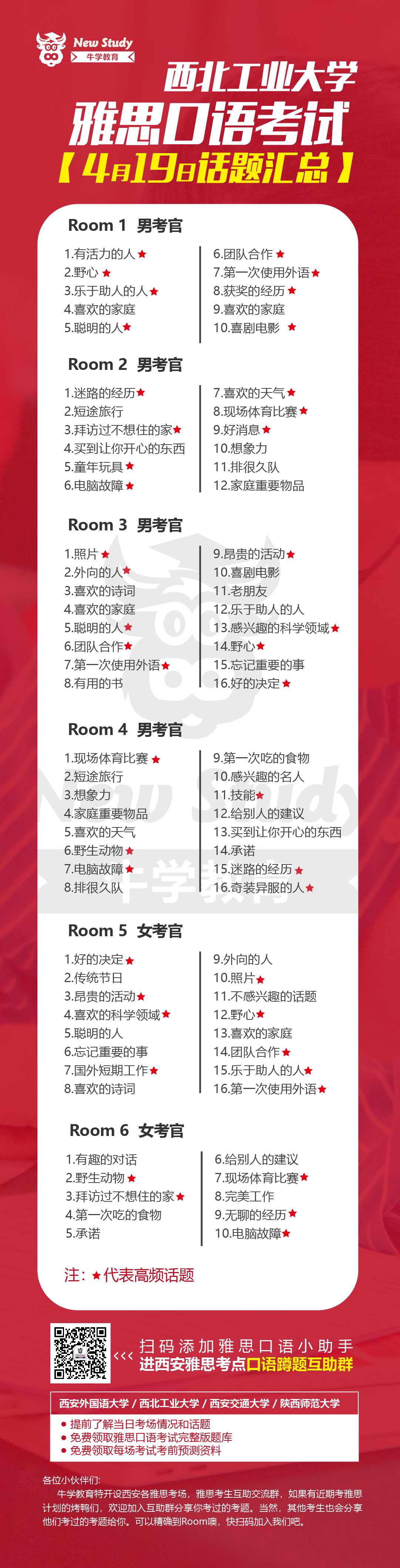 4月19日西北工业大学雅思口语考试话题汇总已经出了!