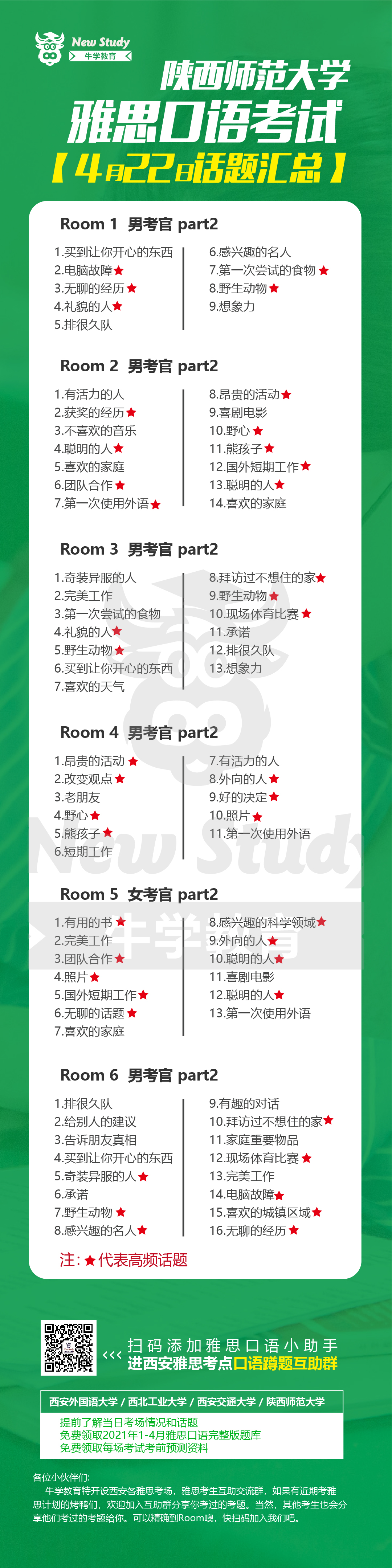 4月22日陕西师范大学雅思口语考试话题汇总已经出了!